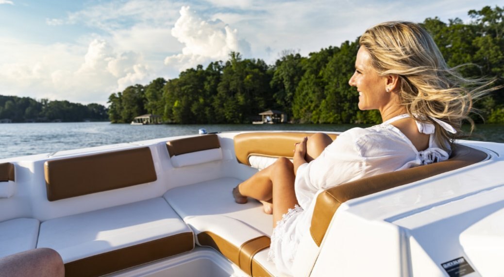 This family-friendly outboard model combines all the most popular aspects of the DX Series. The sleek exterior is complete with hull sculpting and stylish shear lines while the interior is loaded with all the comforts of home. The plush upholstery features quilting with black welt plus transitional cockpit and transom seating offer total lounging comfort while facing forward or aft. When underway the wider V-hull offers stability and a high freeboard keeps everyone safe and dry.