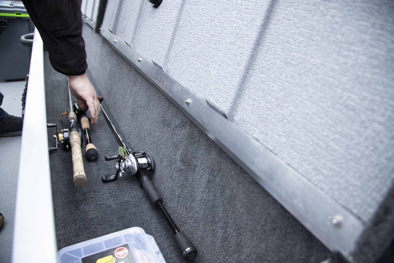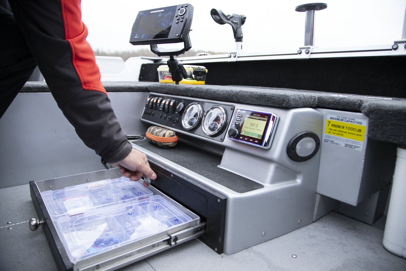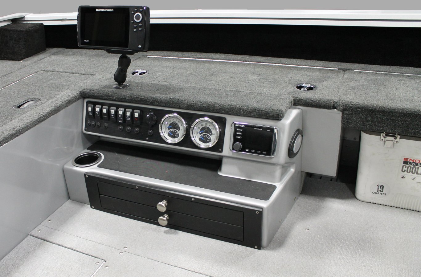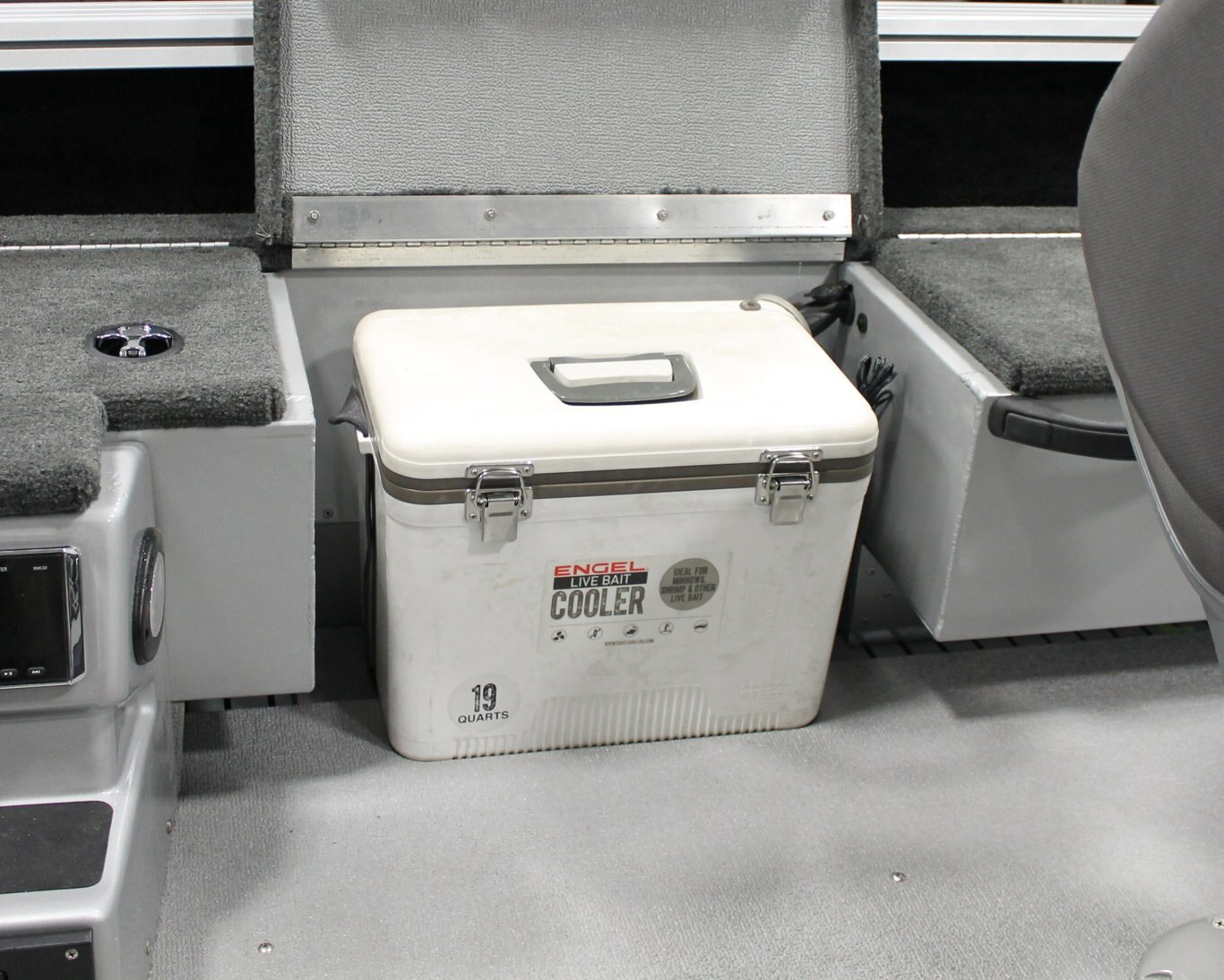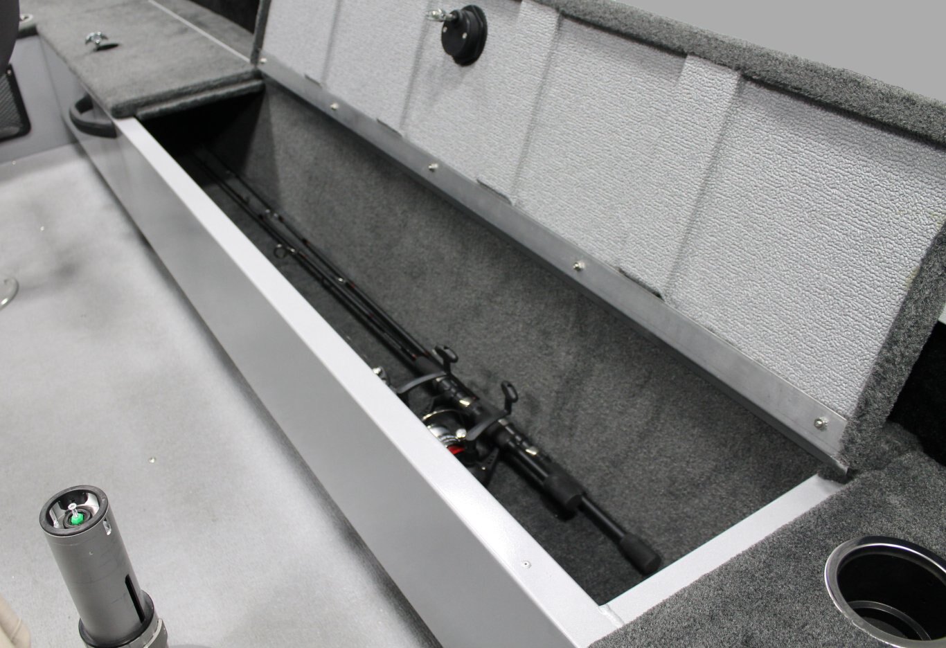 Deck Amenities AM/FM Stereo (N/A on 16') Lifetime Hull Warranty Trolling Motor Panel Lockable Bow Storage Integrated Gunnel Track System (IGTS) Lockable Center Rod Storage Wood Free Fishing Seats Full Vinyl Floor Aerated Stern Livewell